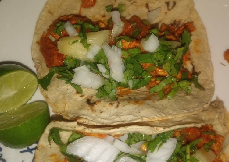 Tacos de pollo estiló pastor, esta es la receta que estas buscando? Mire la lista del menú para elegir la receta y la bebida que desea probar. si buscas Tacos de pollo estiló pastor estás en el lugar correcto.